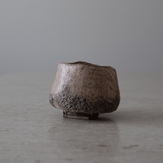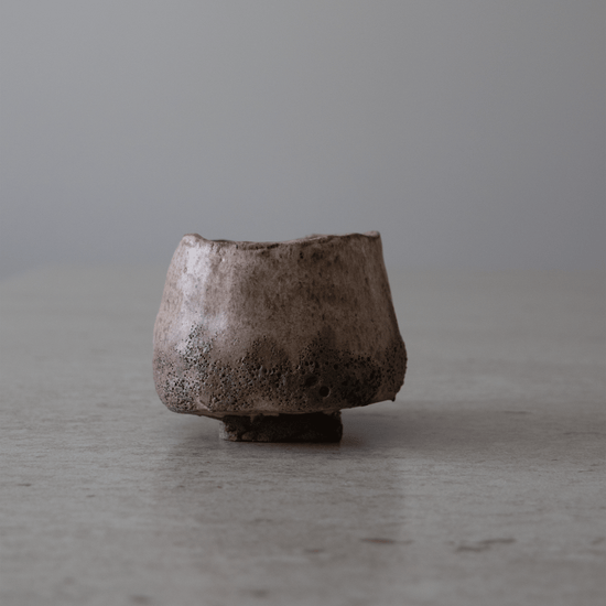 Denne unike og vakre koppen i sandfarget rakuleire er håndbygget i tre omganger. Formen bygges opp, bearbeides, finjusteres og det endelige uttrykket skapes. Koppen glaseres i flere lag for et unikt og levende uttrykk.